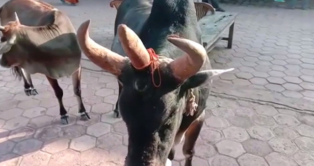 Hindistan’da görüntülenen 3 gözlü ve 3 boynuzlu boğa, sosyal medyada büyük ilgi gördü.