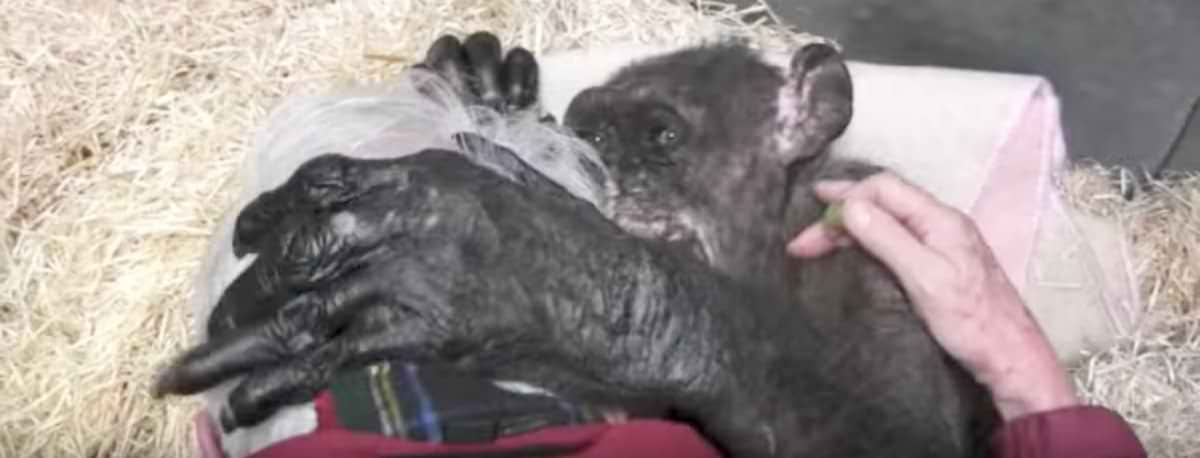59 Yaşındaki Şempanze Yemek Yemeyi Reddediyordu – Onu Büyüten Adam Yanına Gelince Bakın Nasıl Değişti
