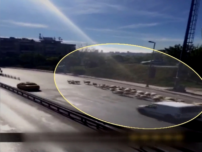 O anları görenler hemen telefona sarıldı ve video kaydetti. Kuyruk uzadıkça uzadı. Sürücülerden biri koyunları kenara almaya çalıştı ama sürü psikolojisi nedeniyle başarısız oldu. Çünkü koyunlar sürücü yerine sürü liderini takip etti. Sürünün kime ait olduğu bilinmiyor. Neyse ki bu anlar gülümseten görüntüler ile sonlandı. Ne koyunlara ne de yoldakilere zarar gelmedi.