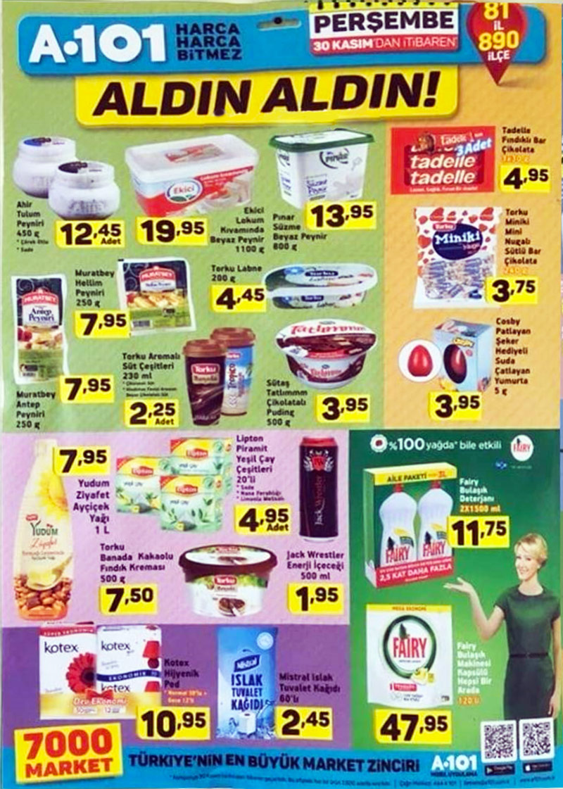 Biz alışverişlerimizin %80’ini A101’den yapıyoruz. Diğer bir markete pek fazla gerek kalmadan hemen hemen tüm ihtiyaçlarımızı karşılayabiliyoruz. Ayrıca perşembe indirimleri ile de ek olarak pek çok gerekli ürünü tedarik edebiliyoruz. Bu hususta A101’in indirimlerini takip etmek gerekir diye düşünüyoruz. Kısa bir 30 Kasım listesi ve görsel incelemeleri ile devam edelim.
