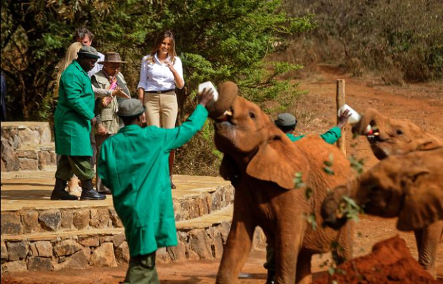 ABD Başkanı Donald Trump’ın eşi Melania Trump, eşinden ayrı olarak ilk uluslararası ziyaretini Afrika’ya yapıyor. First Lady, ziyareti sırasında iki bebek file süt verirken görüntülendi. Bebek fil, sevgi göstermeye çalışan Trump’ı itti.