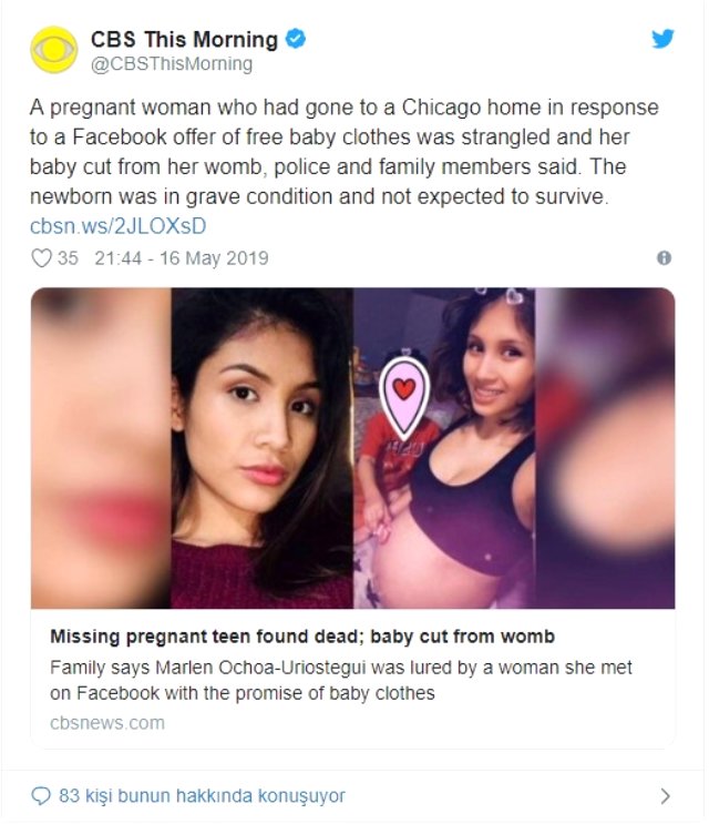 Chicago’da yaşanan akıllara durgunluk veren olay, 19 yaşındaki dokuz aylık hamile Marlen Ochoa-Lopez’in 23 Nisan’da kaybolmasının ve bir gün sonra da cansız bedeninin bir çöp tenekesinde bulunmasının ardından ortaya çıktı.