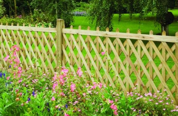 Dekoratif tasarımı olan bahçe kenarlarına uygulanmış ahşap çit modeli.