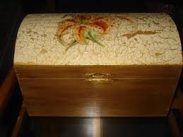 Klasik çatlatma tekniği ile çalışılmış takı sandığı.