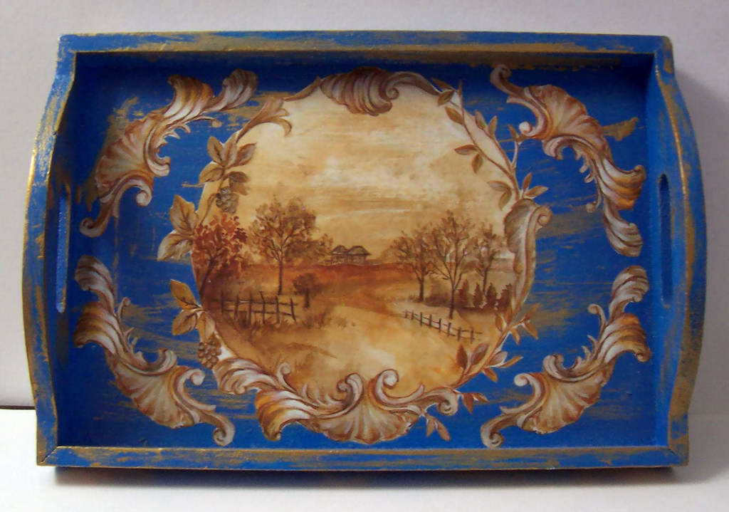 Türk motifleri il işlenmiş tablo güzelliğinde,ahşap boyama tepsi tasarımı.