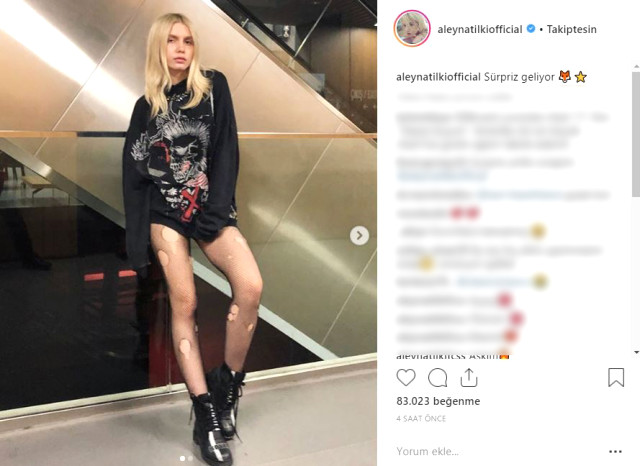 Instagram hesabından yırtık fileli çoraplı pozunu takipçileriyle paylaşan Aleyna Tilki, paylaşımına “Sürpriz geliyor” notunu ekledi. Tilki’nin paylaşımına takipçileri de sessiz kalmadı. Tilki’nin bir takipçisi paylaşıma, “Noldu sana köpek mi saldırdı bu halin ne” yorumunu yaptı. Başka bir takipçisi “Bu kız en sonunda kayışı kopardı” yorumunu yaptı.