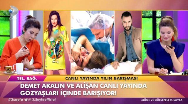 2 Sayfa programının sunucuları, Alişan’ın bebeğinin doğum videosunu beğenen Demet ile Alişan arasındaki küslüğü bitirmek için harekete geçti. Sunucular, Demet ve Alişan’ı telefonla arayarak 6 yıl sonra ilk kez konuşturdu. Birbirlerinin seslerini duyan Demet ve Alişan, canlı yayında gözyaşlarına hakim olamadı.