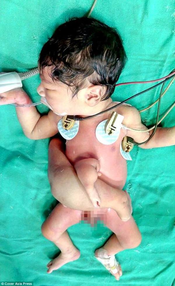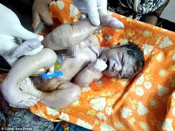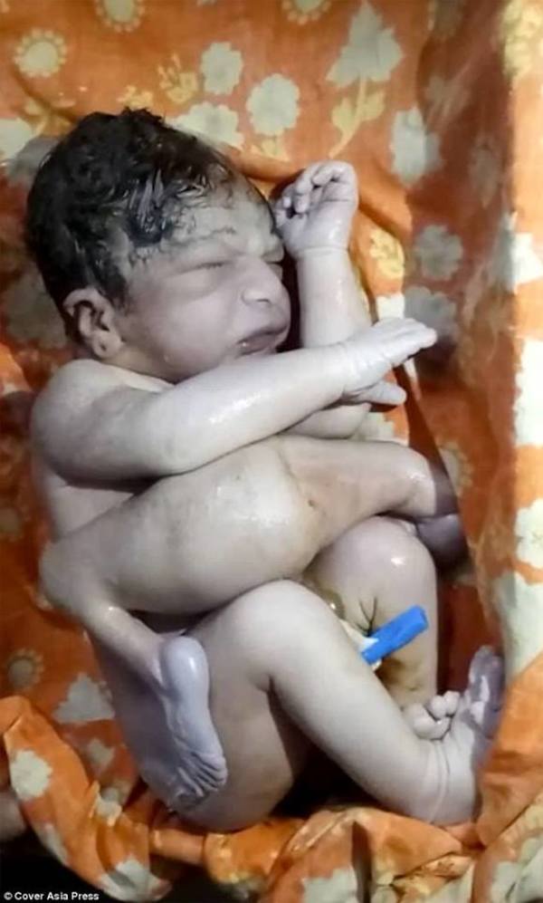 Daily Mail’de belirtilenlere göre bebek ‘parazitik ikiz’miş.