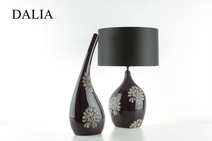 Desenli siyah abajur ve farklı obje modeli.