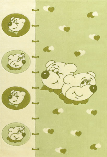 Yeşil ve krem renkli çocuk odası halı modeli yeni çocuk odalarında farklı ışık yansıtır.