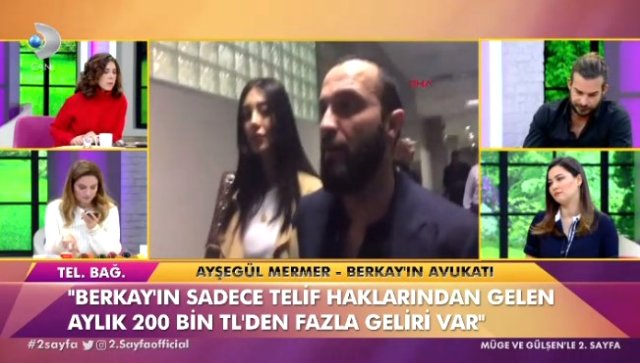 Arda Turan’la olan duruşmasında aylık kazancını bin lira olduğunu söyleyen Berkay Şahin’in avukatı bugün 2. Sayfa programına telefonla bağlanarak Berkay’ın sadece telif haklarından aylık 200 bin TL kazandığını söyledi.