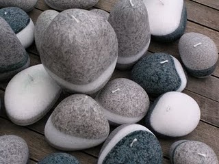 Taş şeklindeki bahçe mumları ilginç.