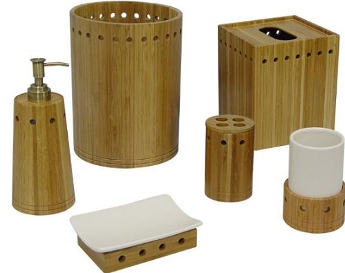 Oldukça doğal ve güzel görünen bambu tasarımlı banyo aksesuar modelleri.