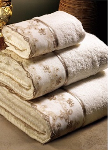 Banyo krem nakışlı havlu dizaynı