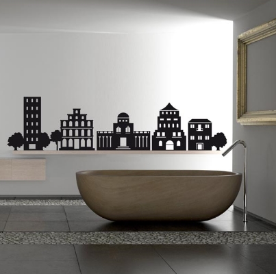 Banyo duvarlarınız için, şehir hayatını anımsatan sticker modeli.