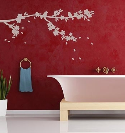 Ağaç dalları üstündeki kuş figürlü banyo duvar stickerı banyoya hoş bir hava katmış.