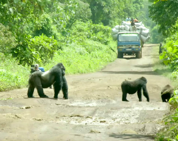 Belgesel Ekibi Goril Yolun Ortasında Durunca Şaşırdı – Ardından Gerçekleşenlere İnanamadılar