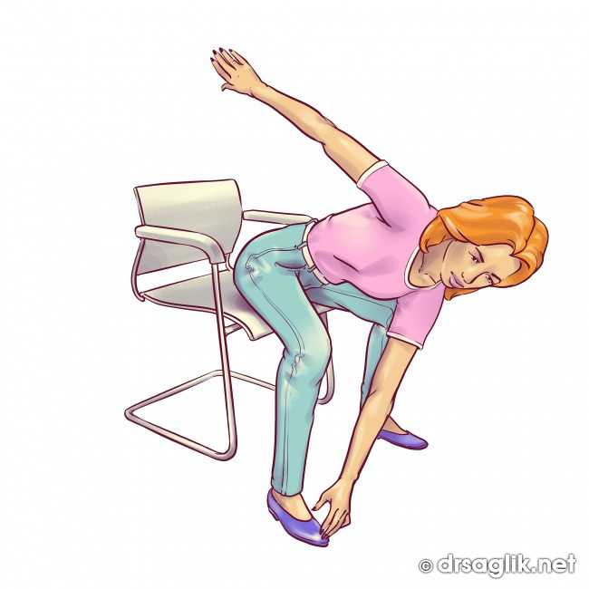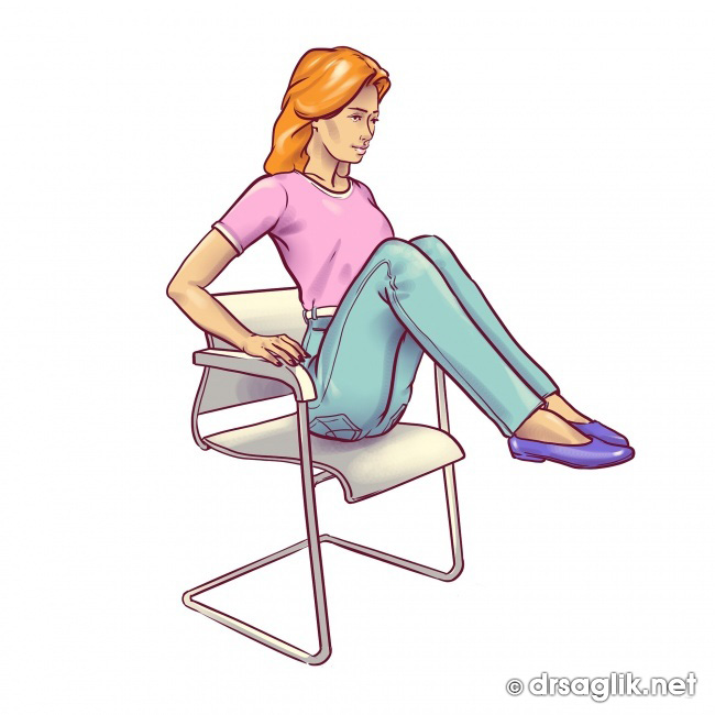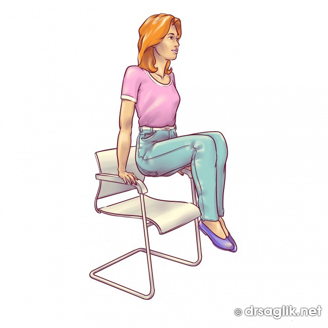 Bir sandalyeye oturun. Sırtınızı sandalyenin arkasına dokunmadan düz tutun.