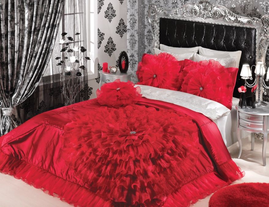 Yatak odanızın şıklığını en güzel şekilde tamamlamak istiyorsanız, Brillant’in yatak örtüleri tüm zarafet ve şıklığı sizi bekliyor. Herkes rüya gibi yatak odası dekorasyonu olmasını ister, galerimizde ki Brillant Yatak Örtüsü Modelleri ile bu ambiyansı yakalamanızda yardımcı elaman görevini, görecek adeta. Seçeceğiniz model yatak odanızın renk uyumunu yakalaması gerekir, hem de mobilyalarınıza uyması gerekir. İç dekorasyon tarzınıza zıt düşecek modeller seçmeniz göz zevkinizi bozabilir. Şayet çok renkli mobilya seçimi yaptıysanız, yatak örtünüzü düz renklerden seçmeniz daha uygun olacaktır. İç dekorasyonda hareketli renklerde olan mobilyaların yanında desenli bir yatak örtüsü kargaşa yaratmaktan başka bir işe yaramayacaktır. Galerimizde 1. resimde çok iyi örneklerinden biri, lila rengin hakim olduğu bir yatak odası iç dekorasyon  modelinde kırmızı yatak örtüsünün patlıcan moru zemin ve perde ile bir bütünlük kazandığını hayretle göreceksiniz.  Masal dünyasından bir sahne gibi , ihtişamı ile göz kamaştırıyor.  İddialı renklerin akılcı kullanılması ile sizde yatak odalarınızı sıra dışı yapabilir, kendinizi özel hissedebilirsiniz. Yaşam alanlarınızı sıkıcı boğucu yapmaktan kaçınmalısınız, bu tamamen bize bağlı, biz kadınlar çok iyi tasarımcısıdırlar  içimizdeki cevherin çıkmasına izin verelim. Sonuç hem sizi hem çevrenizdekileri memnun edecektir. Renk ve uyumu yakalamanız yetecektir, doğru dizayn yaparak yatak odanızı zenginleştirin. Brillant Yatak Örtüsü Modelleri bu yılda, paletinde tüm renkleri kullanmış, kimi yatak örtüsü modelinde sanatçı fırça darbeleri ile adeta sanat eseri gibi desenli, kimi yatak örtüsü modeli ise fırfırları ile gül bahçesine girmiş gibi hissedeceksiniz. Beyaz rengin saflığı ile gelmiş sunuma, kimisi de kırmızı, beyaz, mor, siyah, gri, pembe, ve lila tonlarının şıklığı ile gönülleri feth eder gönülleri. Yatak odası dekorasyonu için en önemli seçimdir yatak örtüleri. Özellikle,  mekana ilk giriş de ilgiyi üzerine toplayan yatak örtüleri doğru renk ve tarzda seçildiği taktirde iç mekanda şık ve dekoratif görünüm kaçınılmaz olur.  Bugün, marka kategorisi için seçtiğimiz Brillant marka yatak örtüsü takımları da iç mekanda yataklarınız için tercih edebileceğiniz en iyi markaların başında geliyor. Gerek renk,  gerekse desenleri ile birbirinden şık Brillant yatak örtüsü modelleri sizlerle..