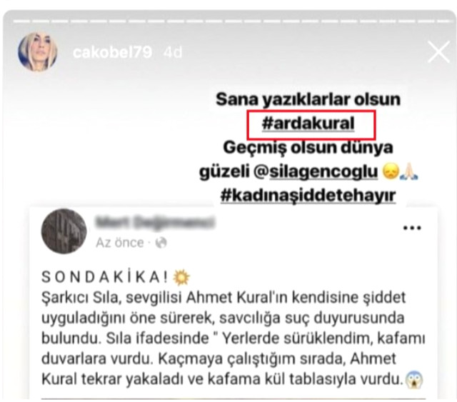 Ahmet Kural’dan şiddet gördüğünü iddia eden Sıla’ya destek olmak için sosyal medya hesabından paylaşım yapan Çağla Şıkel, Ahmet Kural yerine Arda Kural yazınca sosyal medyada alay konusu oldu.