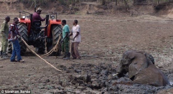 Çamura Saplanan Anne Ve Yavru Fili Çıkarmak İçin Canlarını Dişlerine Taktılar