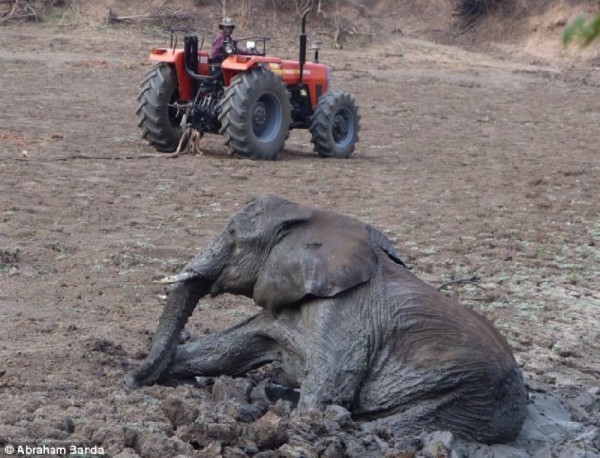 Zambiya’daki Norman Carr Safari Parkı’ndaki güvenlik görevlileri derin çamura saplanmış iki fil gördü.