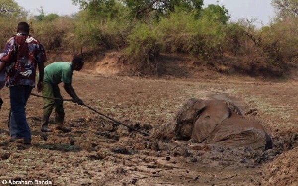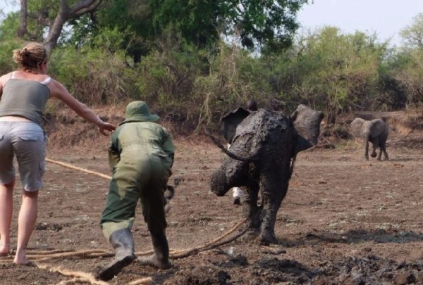 Zambiya’daki Norman Carr Safari Parkı’ndaki güvenlik görevlileri derin çamura saplanmış iki fil gördü.