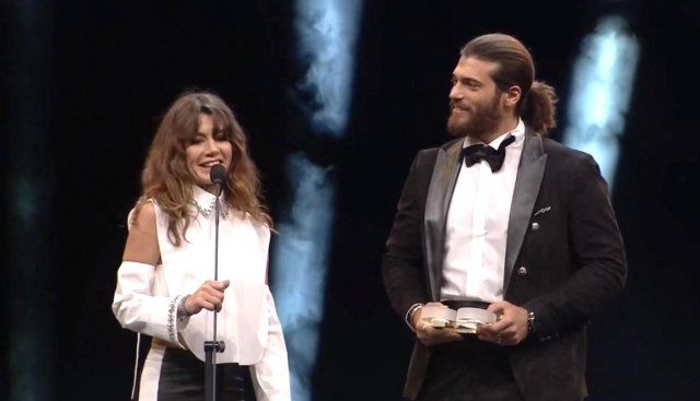 Öte yandan Can Yaman’ın ödül almak için kalktığı esnada yanında oturan Demet Özdemir’in bacağından destek alarak kalması da dikkatlerden kaçmadı.Yakışıklı oyuncunun bu hamlesi ikilinin arasındaki aşk iddialarını doğrular niteliğindeydi. Özdemir, ödül alan rol arkadaşı yerine oturmadan önce öperek tebrik etti.