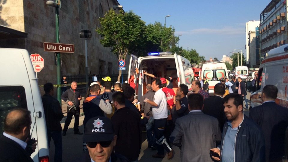 Ulu Camii’nde patlama yaşandı. Olay yerine çok sayıda polis sevk edildi. 1 ölü 10 yaralı olduğu belirtiliyor. Valilikten verilen açıklamaya göre bu patlamanın canlı bomba saldırısı olduğu ifade edildi. Bu patlama saati tam olarak 17:25 tarihi Bursa Ulu Camii’nin çarşı çıkış sırasında meydana geldi. Basınçlı bir patlamaydı ve çok güçlü bir patlamaydı. Çevredeki binaların camları zarar gördü. Yaralıların sağlık durumunun iyi olduğu ifade ediliyor. Bazılarına cam kırıkları isabet etmiş ama bir kısmının kaldırıldığı hastaneden taburcu edilmeye başlandığı açıklandı. Olay yerine itfaiye ve çok sayıda polis ekibi sevk edildi. İlk olarak yapılan en önemli eylem, etraftaki bütün arabalar çekiciler yardımıyla çekildi. Çünkü ikinci bir patlama ihtimalinden bahsedildi. Patama olay yerinin çok yakınına da bir güvenlik kamerası bulundu. Polisler hemen o kayıtları incelemeye başladı. O güvenlik kamerasında tahmin edilen o görüntüler ortaya çıktı. O görüntülerde bir kadın canlı bomba olduğu ve elinde de siyah bir çantanın olduğuna dikkat çekildi. Valilikten hemen bir açıklama geldi ve bu terör saldırısının bir kadın canlı bombanın yaptığı söylendi. Şu anda o canlı bombanın kimliği ile ilgili bir açıklama yapılmadı. Çevrede geniş güvenlik önlemleri devam etmekte… Olay yerinde bulunan vatandaşlar olay yerinin 500 metre uzağına çekildi ve çok titiz bir inceleme yapıldı.