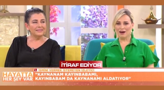 Beyaz TV ekranlarında yayınlanan Hayatta Her Şey Var programına bağlanan bir kadın, kaynanası ve kayınpederinin başka insanlarla yasak aşk yaşadığı ifşa etti.