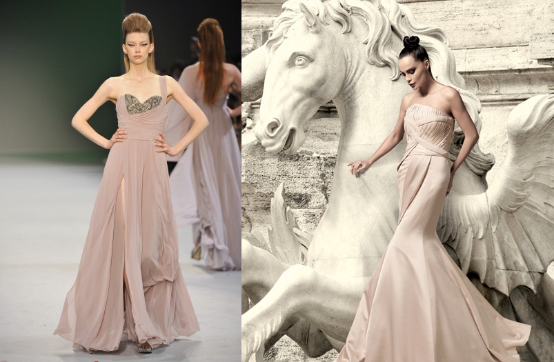 Pudra tonlarıyla dikkat çeken özel tasarlanmış elbise örnekleri..