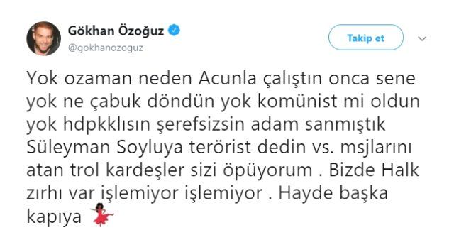Seçim paylaşımlarıyla tepki çeken Gökhan Özoğuz, “Neden Acun’la çalıştın” diyerek kendisini eleştirenlere sert çıktı.