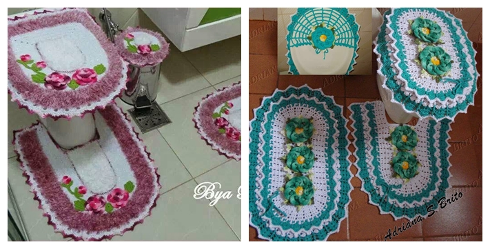 Çiçek Motifli Örgü Klozet Takımı Modelleri