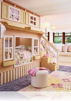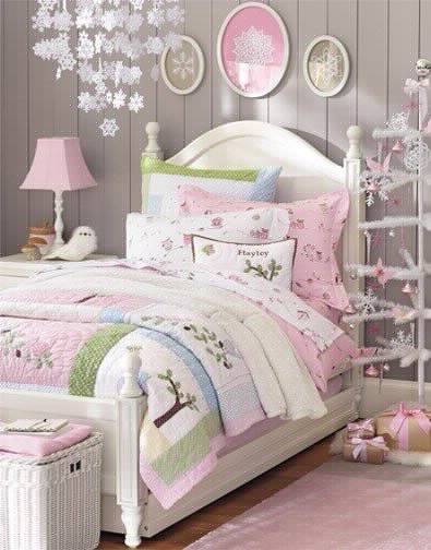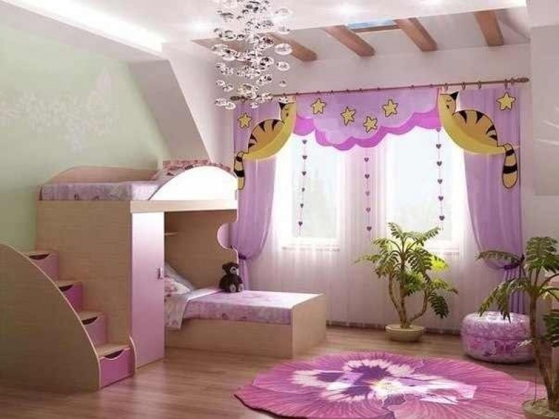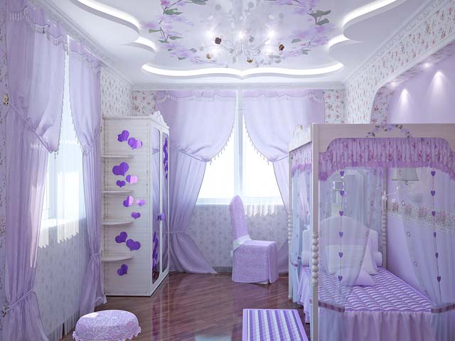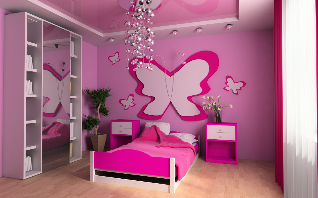 - Pink children’s room with a bed 3d image