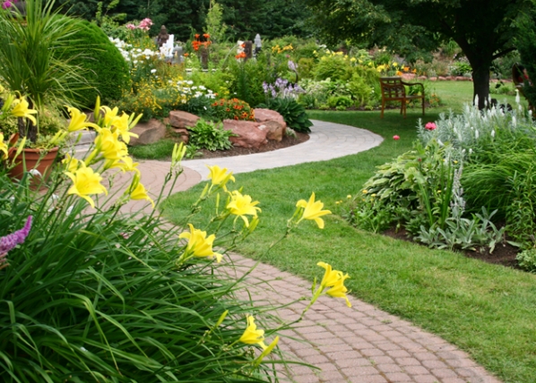 Güzel bir şekilde dizayn edilmiş çim bahçe örneği.