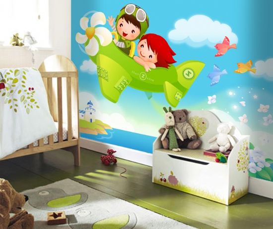 Çocuk Odaları İçin Resimli Duvar Kağıtları
