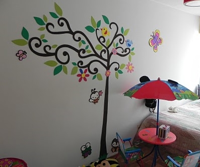 Renkli tasarımıyla çocuk odası duvarını renklendirecek bir sticker modeli.