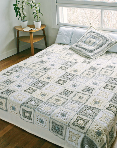 Yine kare motiflerle yapılan dantel yatak örtüsü modelini sizde dilediğiniz renklerde tasarlayabilirsiniz…