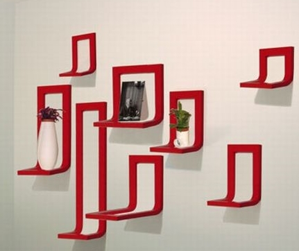 Kırmızı renk ve farklı tasarımıyla dekoratif raf dizaynı.