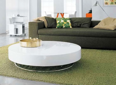 Yuvarlak tasarımıyla oldukça şık ve modern beyaz dekoratif sehpa örneği.