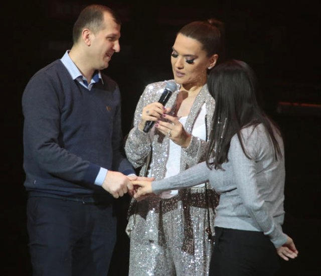 Ünlü şarkıcı Demet Akalın önceki Haliç Kongre Merkezi’nde hayranlarıyla buluştu. Akalın, kendisine hediye gelen tektaşı konserinde evlilik teklifi alan bir hayranına düğün hediyesi olarak verdi.