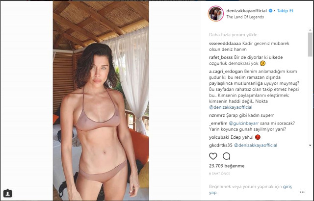 Bazı takipçileri Akkaya’ya bari ramazanda yapma şeklinde mesajlar atarken bazıları ise Akkaya’nın cesur pozunu beğendiğini belirtti.