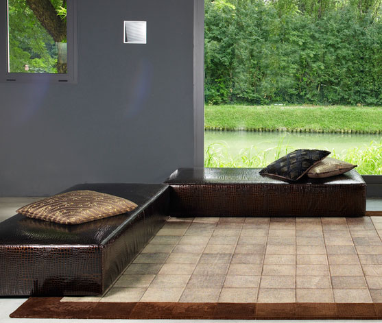 Siyah koltuk takımıile deri halı konbini oldukça şık duruyor.