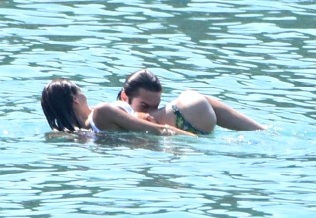 Ünlü oyuncu Dilan Çiçek Deniz ve sevgilisi Furkan Andıç, denize girerek birbirini öpücüklere boğdu. Hatta Andıç bir ara sevgilisinin göbeğini ısırdı.