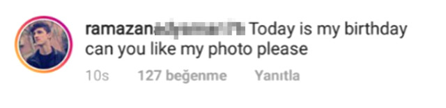 Kullanıcı adından isminin Ramazan olduğu anlaşılan bir takipçi, Lana Del Ray’in tüm paylaşımlarının altına “Bugün benim doğum günüm, doğum günümü kutlar mısın?” yazdı. Bu yorumlar her gün gelmeye başlayınca sinirlenen ABD’li şarkıcı, hayranı Ramazan’a küfür etti. “Her gün mü doğum günün?” diye sorduğu hayranına karşı sert bir tavır sergileyen 33 yaşındaki güzel, bu yoğun ilgiden ve ısrardan bunaldığını belli etti.