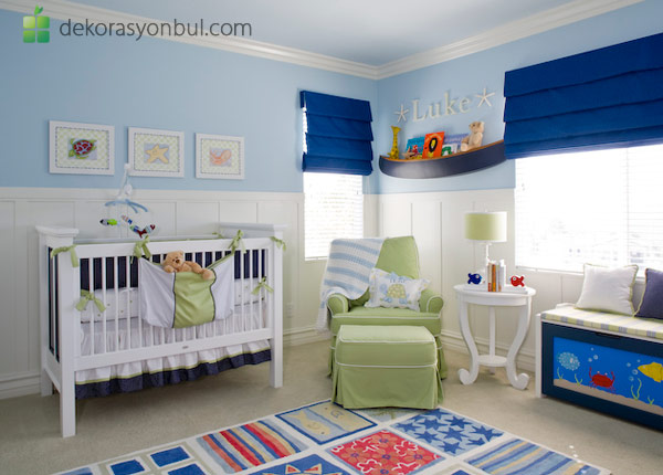 Galerimizde serin mavi (Lacivelt, deniz mavisi, gök mavisi gibi.) tonlarının hakim olduğu genç odası tasarımlarında rahatlık, modernlik yansıtan oda dekorasyonu modellerine ağırlık verdik. Bebeğimiz hızla büyüyecektir, çocuk odası hazırlarken bu düşünceyi göz ardı etmemeliyiz ve ona göre hazırlamalıyız oda dekorunu.