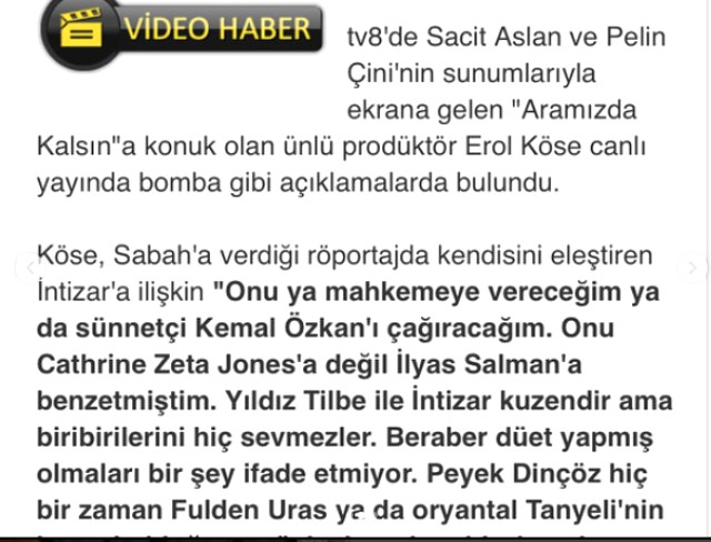 2013yılında özel bir tv programında konuşan yapımcı Erol Köse, o dönem İntizar ile alakalı iddialar ortaya atmıştı. Köse, İntizar’ı kadın sanatçılarının rahatsız olmasından dolayı kovdum demişti.