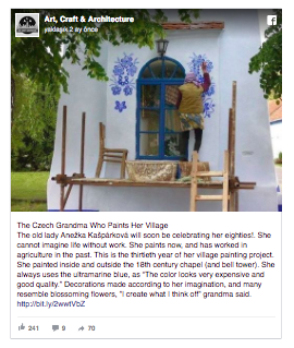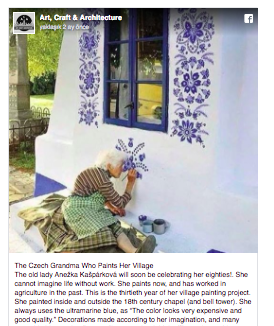 Köydeki evlerin duvarlarında Anežka’nın fırçasının izlerini görmek mümkün.