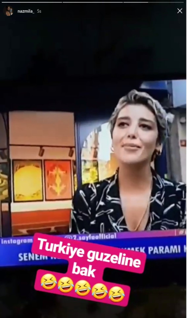 ‘2. Sayfa’ magazin programını takip eden Naz Mila da, Senem Kuyucuoğlu’nun fotoğrafını Instagram hesabının hikayesinde paylaşarak ‘Türkiye Güzeli’ne bak’ notuyla Senem Kuyucuoğlu’yla dalga geçti.