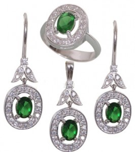 Yuvarlak Zümrüt Taşlı Takı Seti